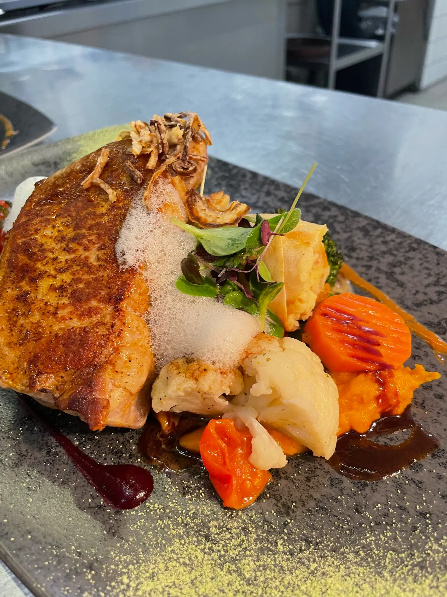 En cuisine, notre philosophie se traduit par le fait que nous travaillons exclusivement avec des ingrédients naturels, régionaux et saisonniers, en évitant totalement les additifs tels que les exhausteurs de goût ou les conservateurs. Nous n'utilisons pas non plus de plats ou de composants prêts à l'emploi. Même nos mélanges d'épices sont créés de toutes pièces par notre chef cuisinier.